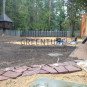 Изначально планировалось сделать работы по устройству посевного «теневого» газона, сорт GreenParkShadowLawn. В процессе добавилась система автоматического полива, спортивная площадка, тропинки из натурального камня, декоративные деревья и кустарники.
